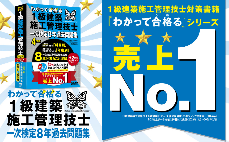 ※【1級建築施工管理技士対策書籍】3法人(紀伊國屋書店・丸善ジュンク堂書店・TSUTAYA)POS売上データを基に弊社にて集計《2024年11月~2025年7月》