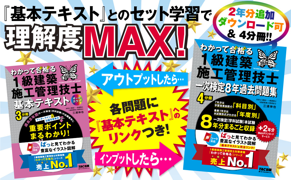 2026年度版でも、1級建築施工管理技士試験で合格をめざすみなさんを力いっぱい後押しします!!