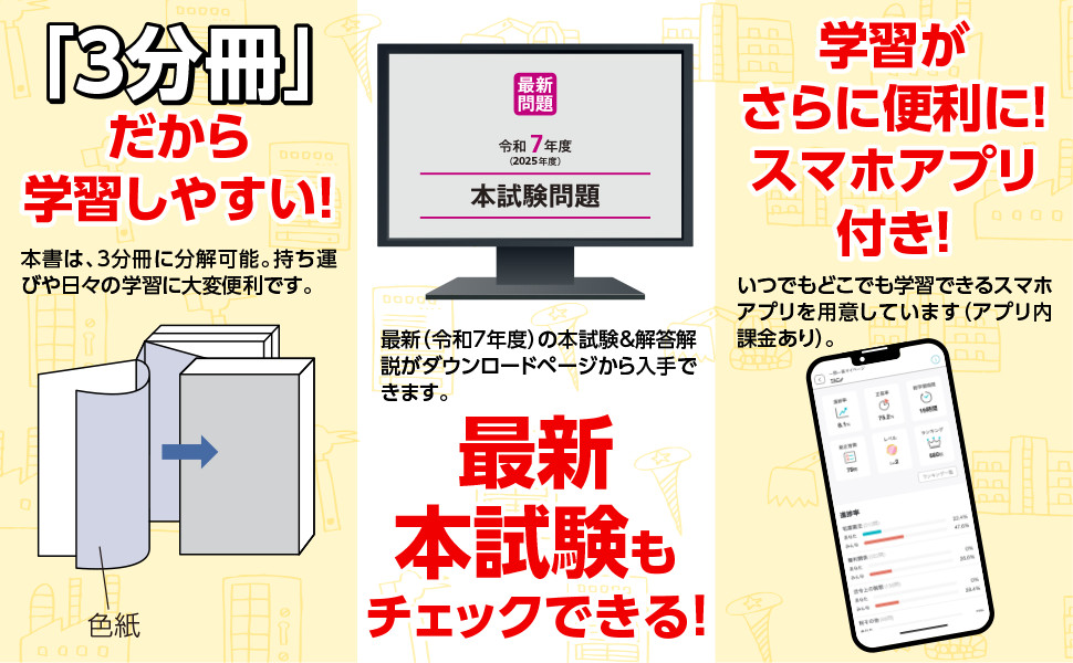 令和7年度本試験ダウンロードや、スマホアプリ(アプリ内課金あり)を使えば、いつでもどこでも学習できる!
