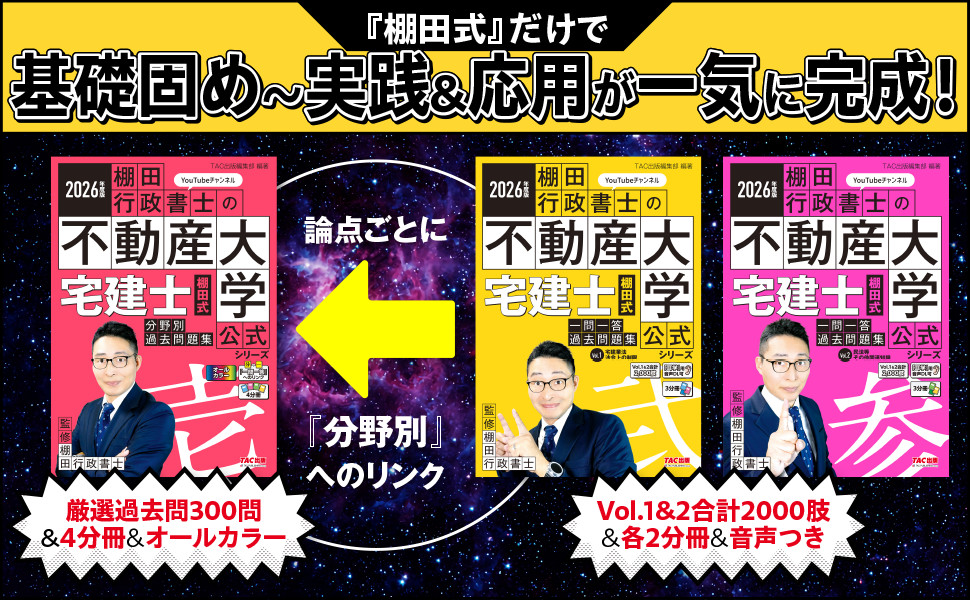 宅建士試験受験者に絶大な人気を誇るYouTubeチャンネル『棚田行政書士の不動産大学』で、本シリーズを使用した動画を随時配信。