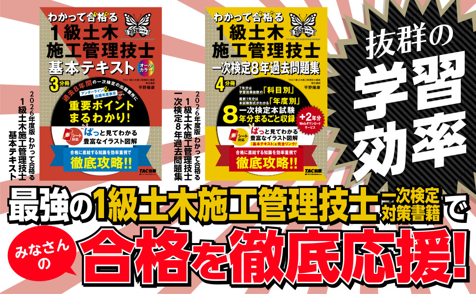 2026年度の1級土木施工管理技士 一次検定で合格をめざすみなさんを力いっぱい後押しします!!