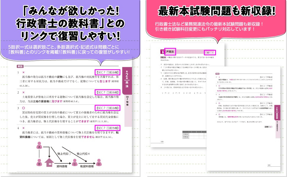 5肢択一式から多肢選択式・記述式までのそれぞれで『教科書』にリンクした問題が出題!
