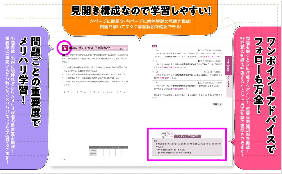 学習しやすい見開き構成&重要度別のメリハリ学習&充実のワンポイントアドバイス!