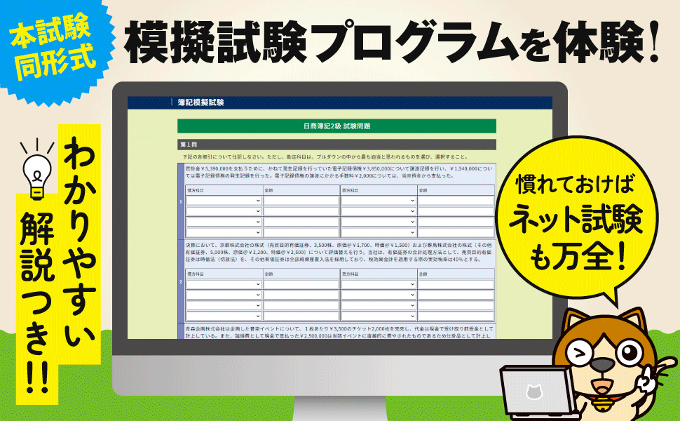 ネット試験を受ける方は、この「模擬試験プログラム」を使って、ネット試験の環境を体験してみてください!