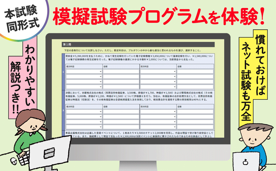 ネット試験を受ける方は、この「模擬試験プログラム」を使って、ネット試験のイメージを掴んでください!