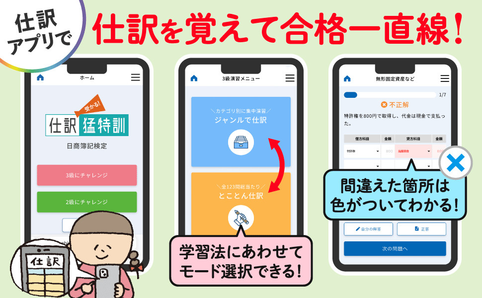 ご自宅でも、電車でも、スマホなどでいつでも仕訳の特訓ができます!