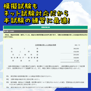 本試験と同じレベル、同じ形式の模擬試験に挑戦! | 模擬試験もネット試験対応だから本試験の練習に最適! | 仕訳アプリでスキマ時間を有効活用! | ||