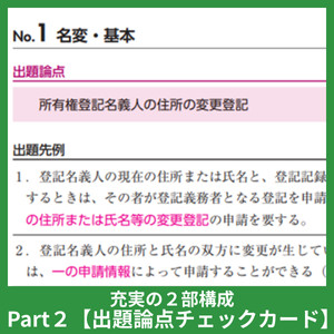 過去の出題論点を徹底的に収録し、演習も交えながら体系的にしっかり学ぶことができる。 | Part1で登場した論点と先例を端的にチェックすることができ、これまで学んだことの復習をサポート。 | 本試験対策として、過去の出題傾向や対策の指針を示しており、学習者の大きな力になります。 |