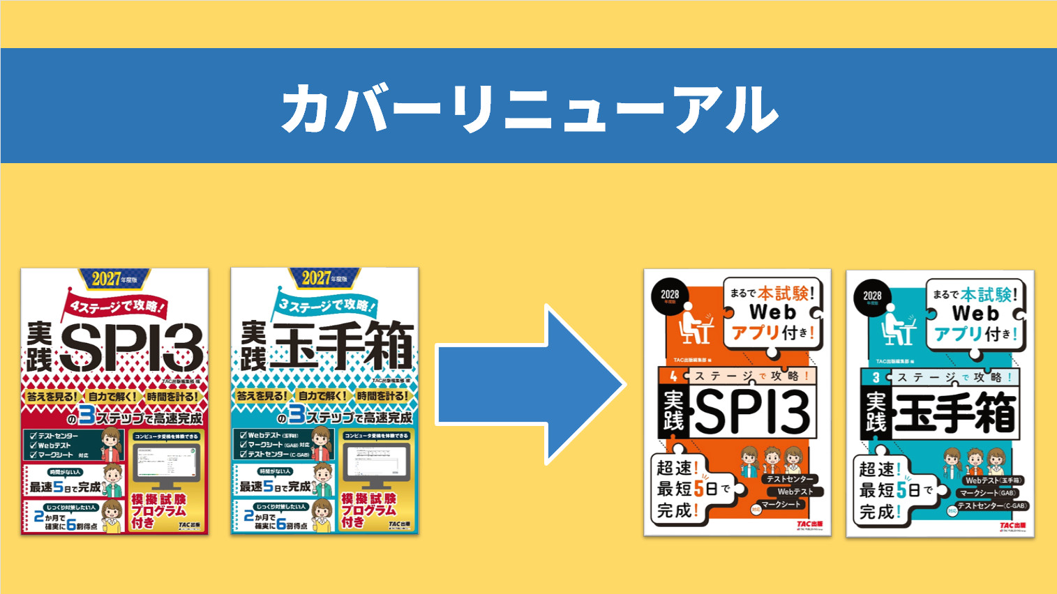 『2028年度版 4ステージで攻略! 実践SPI3』『2028年度版 3ステージで攻略! 実践玉手箱』カバーリニューアル刊行!